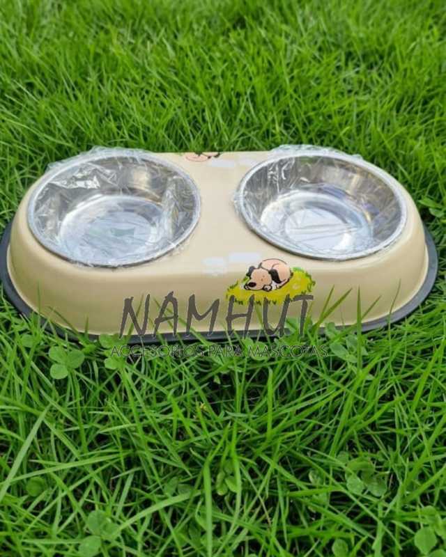 Comedero Acero Inox. Doble Color